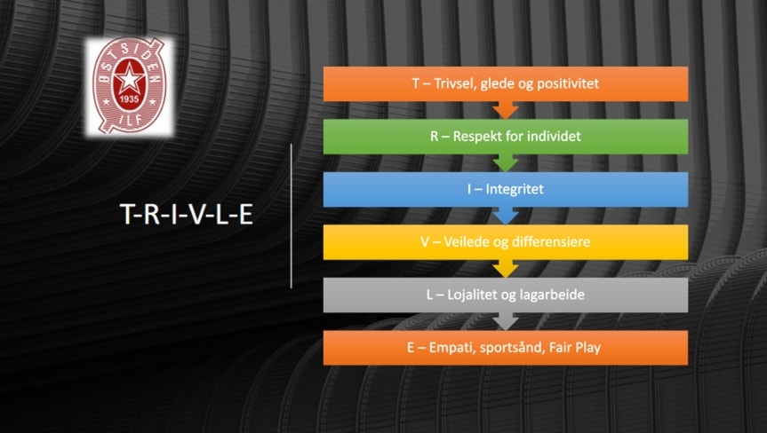 Våre kjerneverdier: T-R-I-V-L-E (betyr: å søke seg frem)